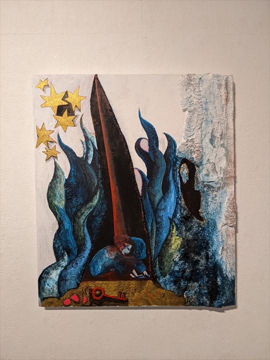村上 ルミ 個展 ベニの家の自分の洞窟 MURAKAMI Rumi solo exhibition Beni’ s own cave in her house 2025年9月9日(火)から14日(日) 12:00から18:00 KUNST ARZT では、2年振り2度目となる 村上ルミの個展を開催します。 村上ルミは、現実と空想が綯交ぜになったようなストーリーを、 独特のコラージュによる絵画的な映像で表現するアーティストです。 展示は、これまで同様、映像作品とその関連絵画からの構成ですが、 本展では、メインルームの映像のストーリーが、 サブルームの絵画に引き継がれます。 シンプルなアイデアですが、前例のない画期的な試みです。 映像と絵画の境界線がほとんどない村上ルミならではの展開です。 (KUNST ARZT 岡本光博) アーティストステイトメント 自然の風景や、その造形美、そこに生息する植物や動物、 慣れ親しんだ童話や神話からヒントを得て、 ストーリー性のある映像作品の制作に取り組んでいます。 制作した平面作品や立体物も素材として使用し、 アナログ特有の凹凸の手触りを残した、どの場面を切り取っても、 絵画的な美しさを持つ映像作品を目指しています。 PRESS RELEASE MURAKAMI Rumi (b.2000, Fukuoka pref, lives and works in Kyoto) is an artist who creates unique pictorial collages of images that tell a story that seems to be a mixture of reality and fantasy. She graduated from the contemporary art course at Kyoto SAGA Junior college Of Arts. |