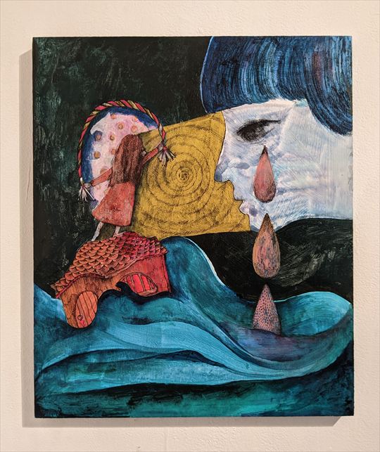 うずまきの海 2025 パネルにアクリル絵具、紙、ペン、木炭、ワニス 38×45.5×2p |