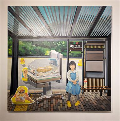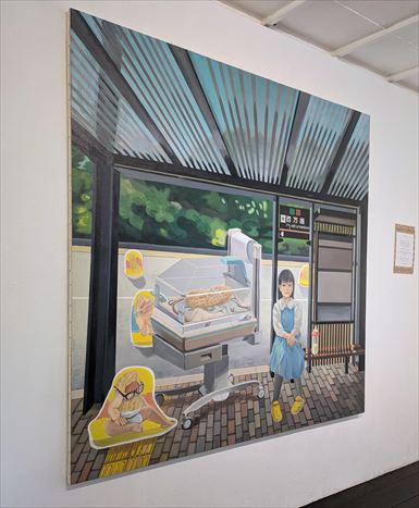 志村佳苗 SHIMURA Kanae じゅんばんばん 2025 キャンバス 油彩 1620×1620×30 mm 360,000円 保育器の中で、ひっそりと呼吸する早産の子。 100回念仏を唱えることが語源のバス停で待つ母。 実体験から。 |