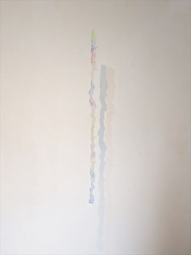 明石 麻里子 AKASHI Mariko cut 2023 ポリエステル、ナイロン、糸 Polyester, nylon, yarn 120×1100×50mm ? 120,000 ちぎれた重度のリストカットされた 腕から血管、それとも血液がドクドクと・・・。 華やかなドレスを連想させる オーガンジー素材をここまで 血肉化させる拘りも魅力です。 |