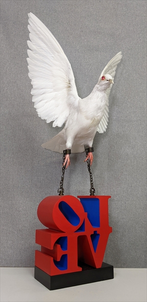絆創膏、鳩除けの針、鳩のフィギュア、透明フィラメント、LED