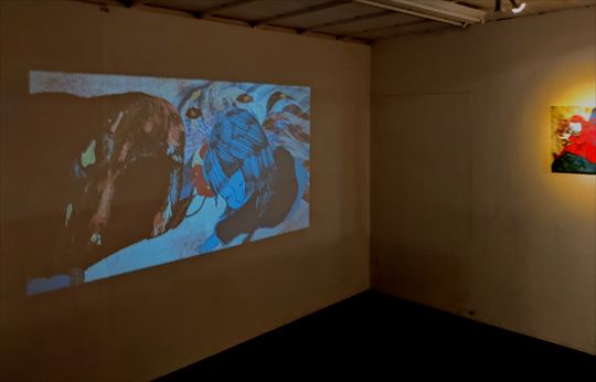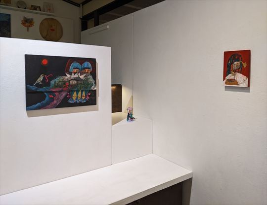 村上 ルミ 個展 ベニの家の自分の洞窟 MURAKAMI Rumi solo exhibition Beni’ s own cave in her house 2025年9月9日(火)から14日(日) 12:00から18:00 KUNST ARZT では、2年振り2度目となる 村上ルミの個展を開催します。 村上ルミは、現実と空想が綯交ぜになったようなストーリーを、 独特のコラージュによる絵画的な映像で表現するアーティストです。 展示は、これまで同様、映像作品とその関連絵画からの構成ですが、 本展では、メインルームの映像のストーリーが、 サブルームの絵画に引き継がれます。 シンプルなアイデアですが、前例のない画期的な試みです。 映像と絵画の境界線がほとんどない村上ルミならではの展開です。 (KUNST ARZT 岡本光博) アーティストステイトメント 自然の風景や、その造形美、そこに生息する植物や動物、 慣れ親しんだ童話や神話からヒントを得て、 ストーリー性のある映像作品の制作に取り組んでいます。 制作した平面作品や立体物も素材として使用し、 アナログ特有の凹凸の手触りを残した、どの場面を切り取っても、 絵画的な美しさを持つ映像作品を目指しています。 PRESS RELEASE MURAKAMI Rumi (b.2000, Fukuoka pref, lives and works in Kyoto) is an artist who creates unique pictorial collages of images that tell a story that seems to be a mixture of reality and fantasy. She graduated from the contemporary art course at Kyoto SAGA Junior college Of Arts. |