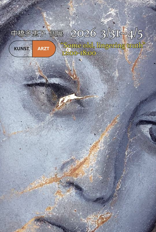 中橋 多恵子 個展 NAKAHASHI Taeko solo exhibition 2026年3月31日(火)から4月5日(日) 12:00から18:00 KUNST ARZTでは、3年振り、2度目となる 中橋多恵子の個展を開催します。 中橋多恵子は、クリスチャンとして、 宗教との関わりを油彩やモビールを用いて 考察するアーティストです。 キリスト教のイコンを油彩描写し、 それをサンドペーパーで傷つけ・・・、 信じることと疑うこと、といった アンビバレントな感情が混在し、 時には、燭や真鍮製のモビールを加え、 儀式的なインスタレーションを展開しています。 (KUNST ARZT 岡本光博) 展覧会コンセプト 「時間が経つと次第に薄れていく事実が 体のどこかで残り続け、 決して消えることのない存在として残っている。 それが日常で繰り返されている。 無関心のようで、時に疑問を投げかけたくなる 宗教や信仰の存在について、 特別な日常の肌触りを感じながら、 熱狂的な崇拝でも、完全な拒絶でもなく、 ただ「そこにある」という事実を留めていく。」 PRESS RELEASE NAKAHASHI Taeko (b.1991, Aichi pref, lives and works in Kansai) is an artist who examines her relationship to religion as a Christian through oil paintings of Christian icons and by damaging them with sandpaper. She earned her master's degree in painting course at Kyoto University of the Arts. |