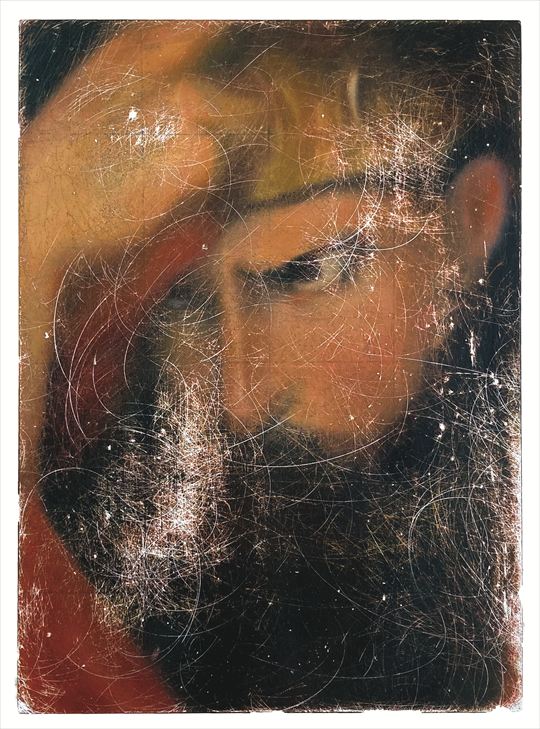 ネブカデネザル Nebuchadnezzar 2022-2023 540x650x40mm パネルに油彩、砂、サンドペーパー、真鍮板 Oil on panel, sand, sandpaper, brass plate |