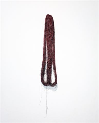 明石 麻里子 AKASHI Mariko cut 2023 ポリエステル、ナイロン、糸 Polyester, nylon, yarn 120×1100×50mm ? 120,000 ちぎれた重度のリストカットされた 腕から血管、それとも血液がドクドクと・・・。 華やかなドレスを連想させる オーガンジー素材をここまで 血肉化させる拘りも魅力です。 |