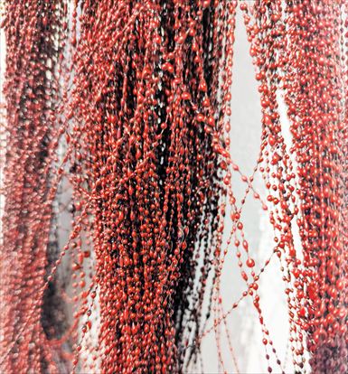 森田 志宝 / MORITA Shiho Drriping_a 2022.4月~2023.5月 朱漆、絹糸、記録冊子 漆玉部分高さ130mm 絹糸長さ約4m 132,000 円 1年間、日々塗り続けた “漆玉”の磔刑的展示と 1か月ごとの記録写真冊子。 エイリアンor内臓器官・・・。 見る人それぞれに違う 表情で立ち現れます。 |