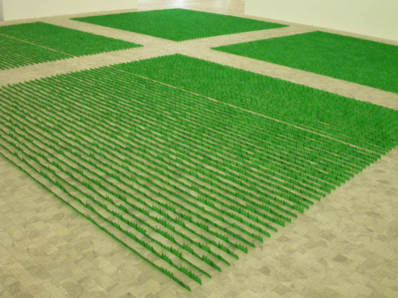 ST # 276 rice field バラン (弁当や寿司に使われるプラスティック製の葉) BARAN : Sushi Decorative Partition Grass キール市美術館(ドイツ)でのインスタレーション Installation 'views from abroad ' show Stadtgalerie Kiel 2005 |